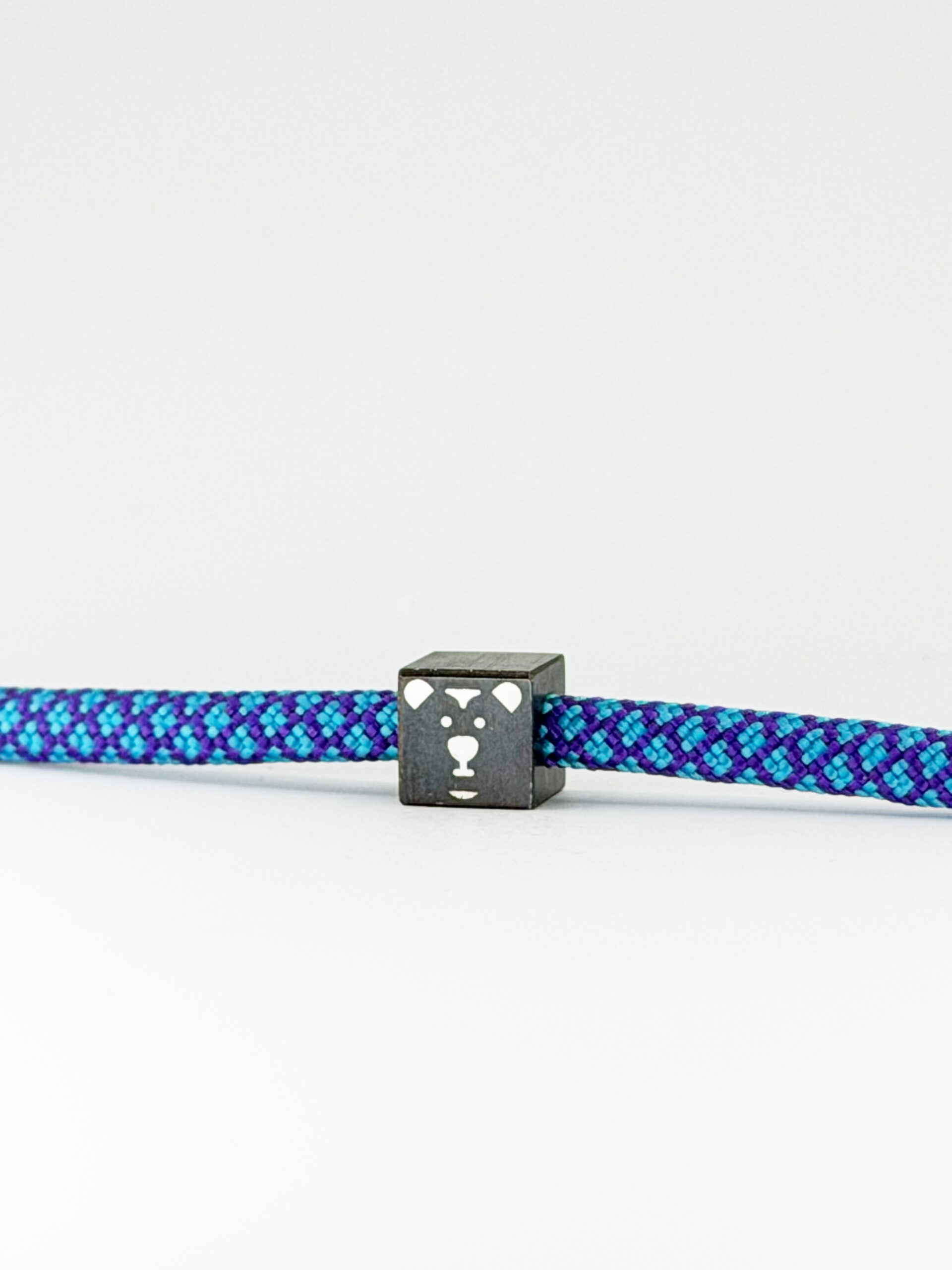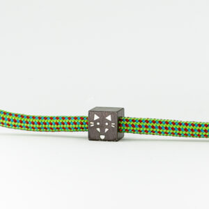 Bracciale in Paracord colorato con gioiello realizzato da profilo quadro in ferro fiammato nero e intarsio in argento. Dimensione 8x8x8 mm.